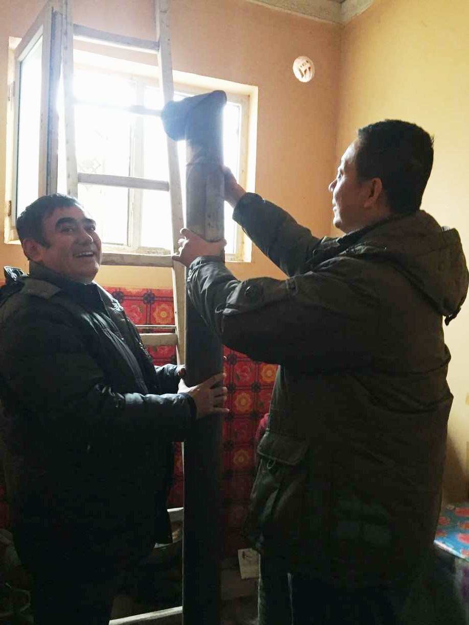 帮亲戚家安装新炉子 过一个温暖的冬天