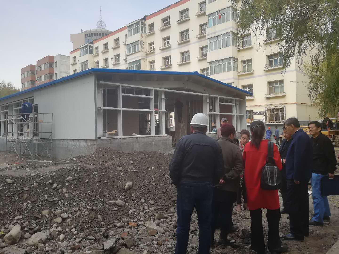 今年夏天,按照自治区的要求,为了确保校园的安全稳定,校党委决定把职工住宅区和教学区施行硬隔离。由于学校餐厅和开水房都在教学区,老人们觉得吃饭和打开水较以往有些不方便。校党委书记高发水听到这一反映后,带队调研,听取老人们的心声,并当即决定:在住宅区专门为老人们建一座餐厅,就近吃饭、打水。
