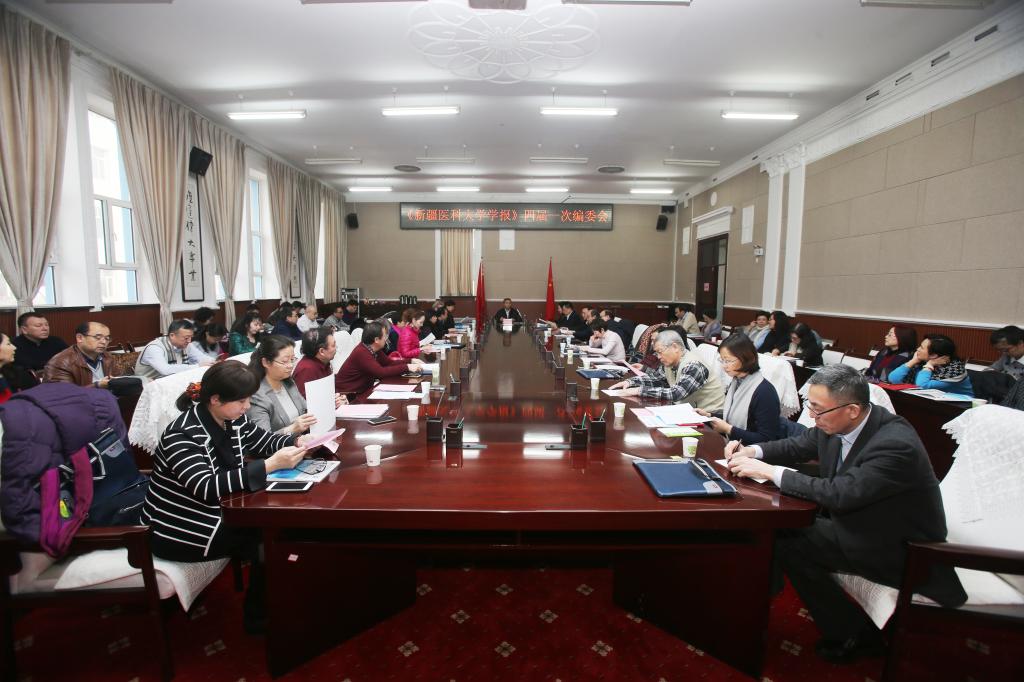 2018年1月17日下午,beat365中文官方网站召开学报四届编辑委员会一次会议。校领导凯赛尔·阿不都克热木、安冬青、热娜•卡斯木,第四届学报编辑委员会校内委员以及学报编辑部全体工作人员参加了会议,第四届编辑委员会常务副主任委员安冬青副校长主持会议。