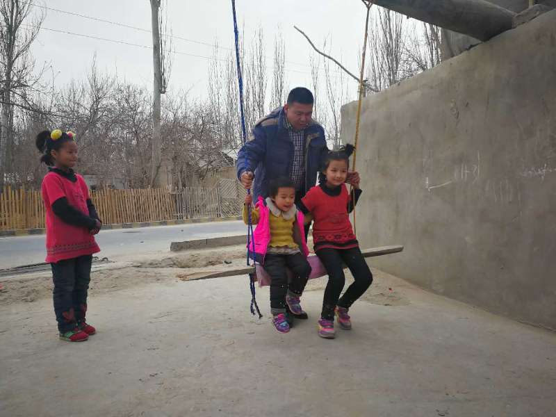 吉祥的春联贴起来,大红的灯笼挂起来,春节的年味洋溢在莎依甫家,结亲干部和孩子们一起做游戏、跳大绳、荡秋千,看着孩子们含着香甜的糖果、做着快乐的游戏,温馨、团结、团聚的年味就应该是这个味道。