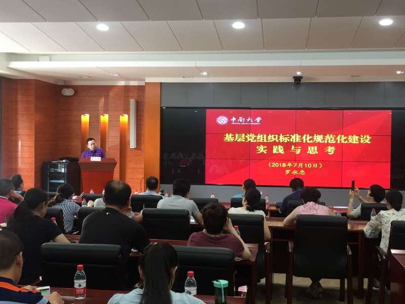 在为期五天的培训中,中南大学校方安排了中南大学党委常务副书记陶立坚同志、中南大学党委组织部部长李景升同志、中南大学党委组织部副部长罗永忠同志、中南大学建筑与艺术学院党委副书记张金学同志、中南大学马克思主义学院教授谭希培同志到场为学员授课,他们以《坚持立德树人,建设特色鲜明的世界一流大学》、《关于二级党组织发挥政治核心作用的思考》、《基层党组织标准化规范化建设实践与思考》、《抓好高校党建工作,培育新时代的接班人和建设者》、《突出政治建设功能,全面提升高校基层党组织组织力》为题,进行了深入的讲解,内容丰富,具有较强的理论性和实践性。