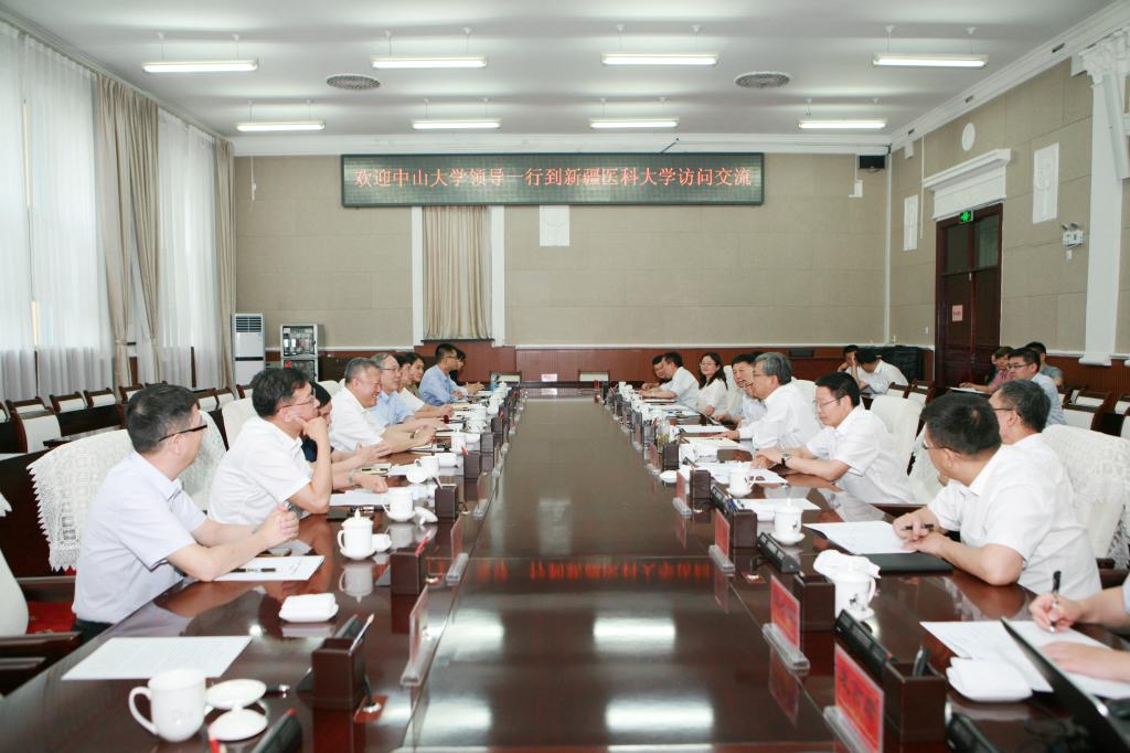 高发水表示,我们将以此次中山大学来访交流为契机,学习借鉴中山大学的好经验、好做法,希望在前期良好的援建基础和成果之上,更加务实、深入地谋划和推进新一轮对口支援工作。一是以“一流学科”建设为切入点,充分发挥beat365临床医学作为全疆首个进入ESI(基本科学指标数据库)全球排名前1%的学科优势,建设具有新医特色、地域特色,适应国家战略需求的西部、乃至全国一流医科大学和“一流学科”。二是充分利用中亚特高发疾病、新疆特殊药材资源和特殊地缘优势,借助兄弟院校的先进理念、技术和人才资源,搭建平台共同开发,促进高层次合作、产出高水平成果。三是建立协调一致、运转高效、互惠互利的合作关系,构建改革发展的“共同体”。我们将切实把党中央、自治区党委的亲切关怀、把包括中山大学在内的内地高水平大学的鼎力支持和无私帮助,转化为巨大动力,为建设国内同类院校先进、有一定国际影响的高水平beat365中文官方网站而努力。