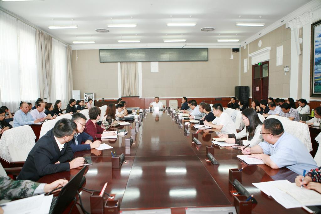 校领导凯赛尔·阿不都克热木、贾文霄、姚文兵、赵翠芳、李豫凯,和各职能部门负责人、各学院书记、院长和主管教学的副院长、专家组联络员及评建办工作人员参加了会议。会议由副校长姚文兵主持。