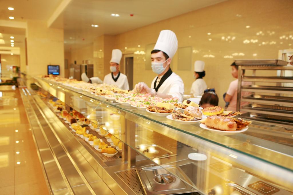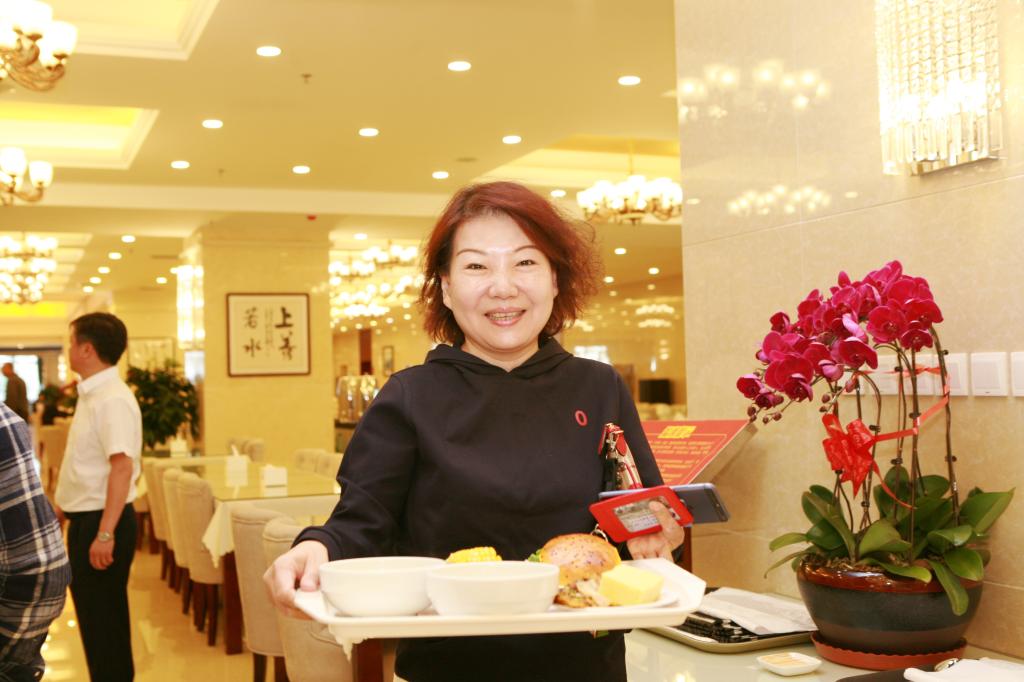 上午12点多,已有部分教职工按捺不住激动的心情,陆续赶来餐厅一睹风采,门口摆放着厨师们用山药和萝卜精心雕成的孔雀、仙鹤摆盘作品吸引着老师们纷纷拿出手机拍照。优美干净的环境、现代化的设备、文化气息浓厚的氛围,让前来就餐的老师们瞬间心情愉悦、胃口大开。