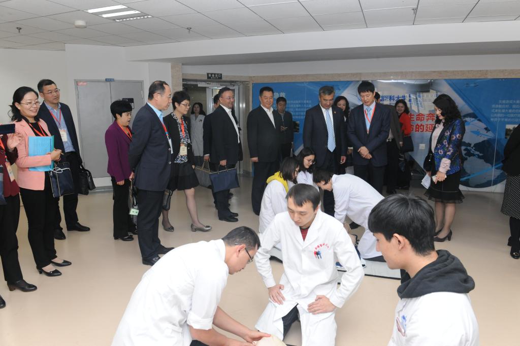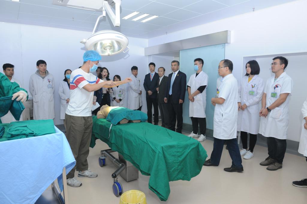 今天上午,专家组一行来到beat365中文官方网站第一临床医学院临床技能培训中心(模拟医学培训部),实地查看了本科生临床技能培训情况。专家组一行参观了技能培训中心、模拟培训部、模拟门诊、模拟手术室、微创技能培训部、模拟病房、穿刺培训室等临床技能培训场地,并对如何更好的做好临床技能培训提出了建议。