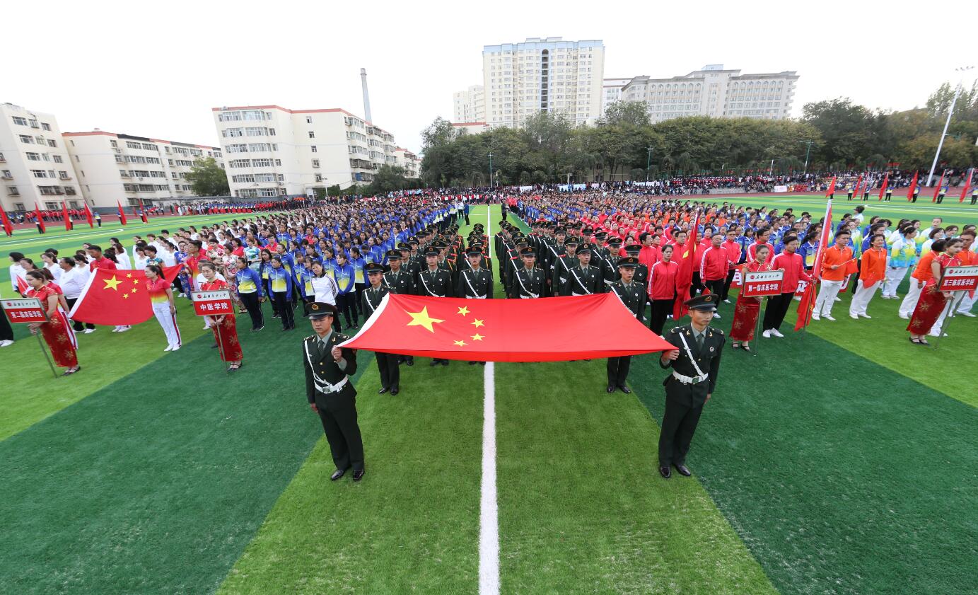 健康阳光展现新医风采,活力四射释放新医豪情。带着对祖国69岁生日的祝福、带着建设“健康中国”的使命、带着对青春的礼赞、带着对运动的激情,9月29日,beat365中文官方网站2018年大学生、教职工运动会在绿草如茵的新体育场盛大开幕。红旗招展、鼓乐阵阵,教职工们精神饱满昂首阔步,学生们朝气蓬勃活力四射,近两个小时的开幕式,处处体现着新医人团结凝聚的强大力量。