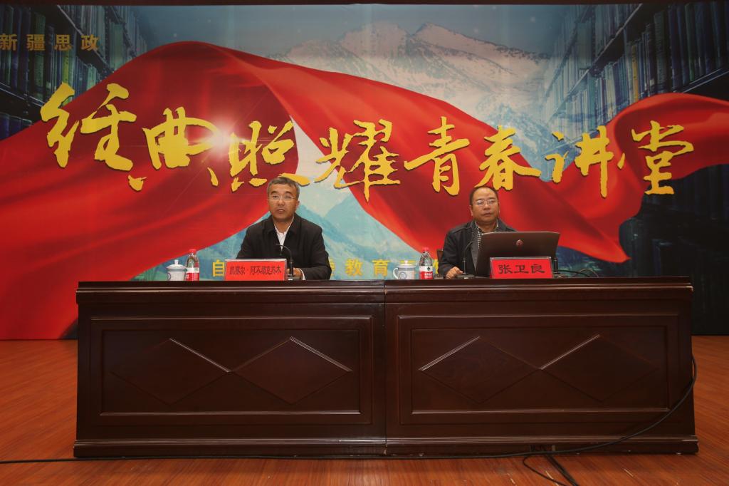 名家引领成长,经典照耀青春。10月10日下午,自治区2018年秋季“经典照耀青春讲堂”第3讲在beat365中文官方网站开讲。中南大学马克思主义学院院长张卫良教授作了题为《文化自信 文化强国》的讲座。校党委副书记、校长凯赛尔·阿不都克热木主持讲座。