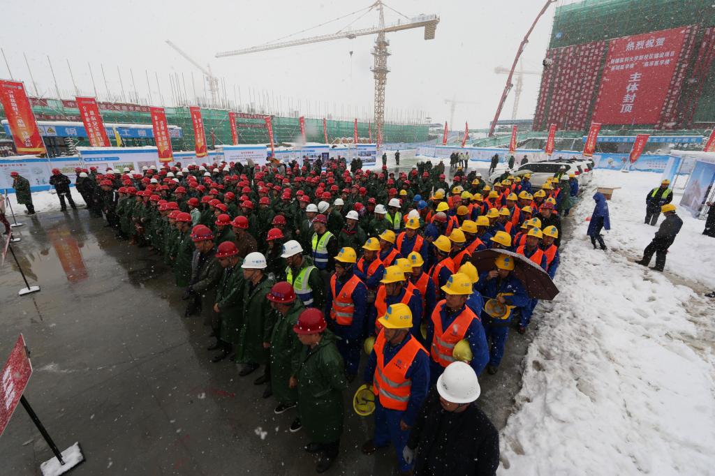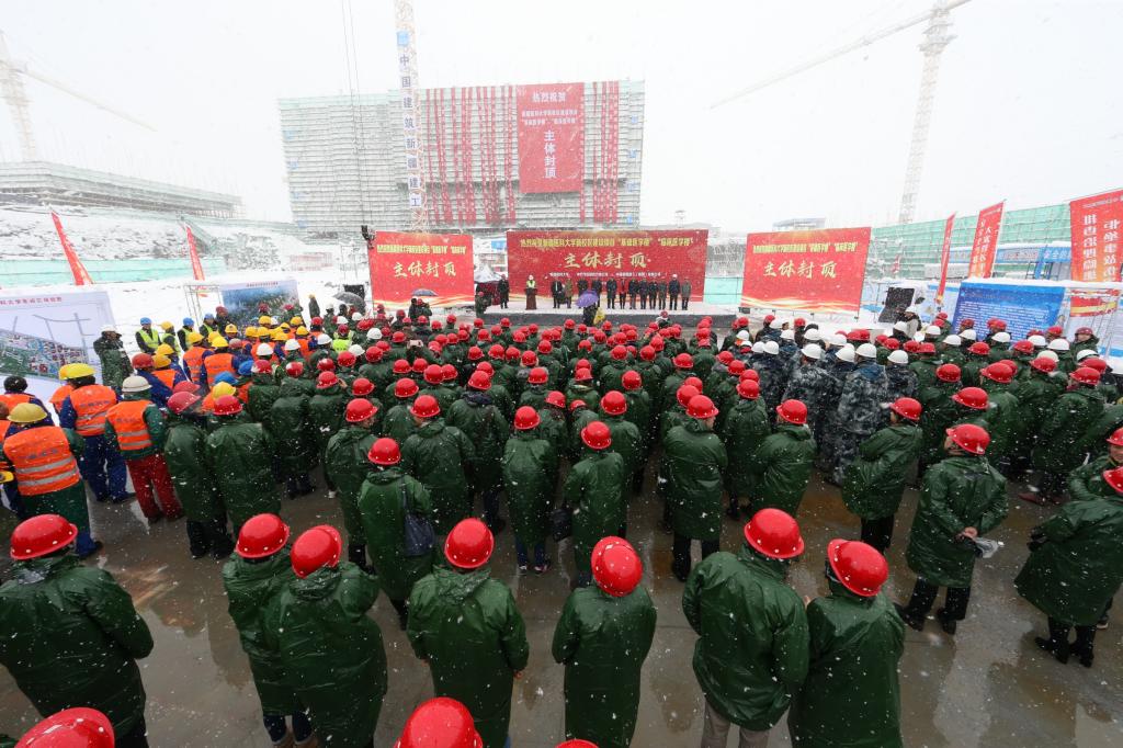 瑞雪不散抱层岭,阳谷霞光射山顶。踏着2018年金秋第一场瑞雪,10月18日上午,beat365中文官方网站新校区基础医学楼和临床医学楼主体封顶仪式隆重举行。这标志着学校新校区建设将全面提速,进入加快建设的新阶段。