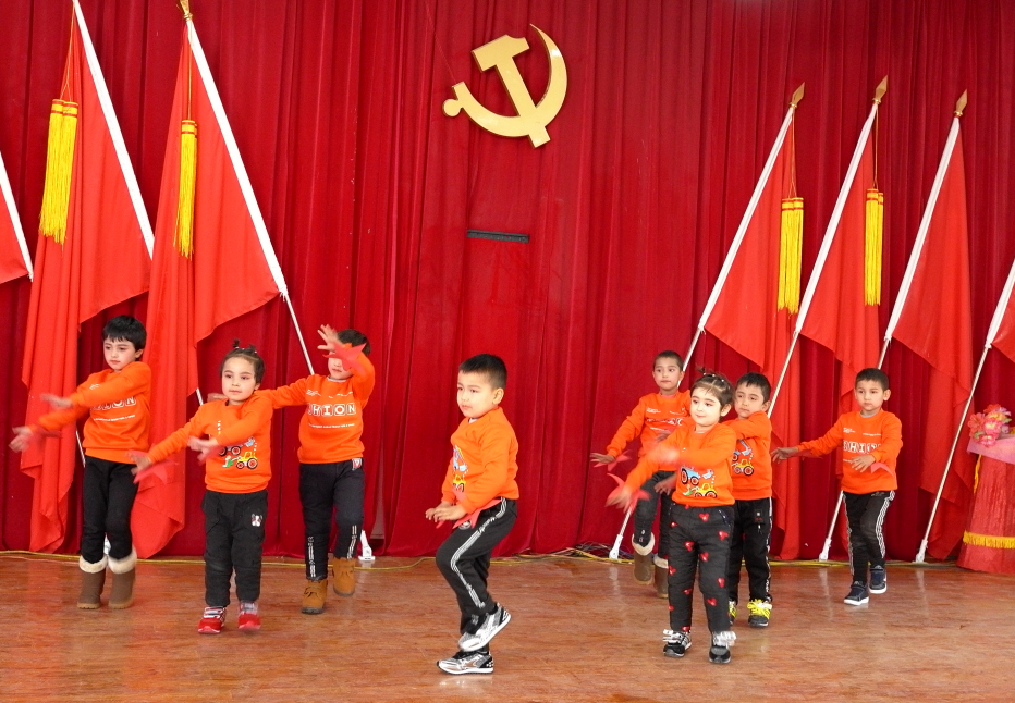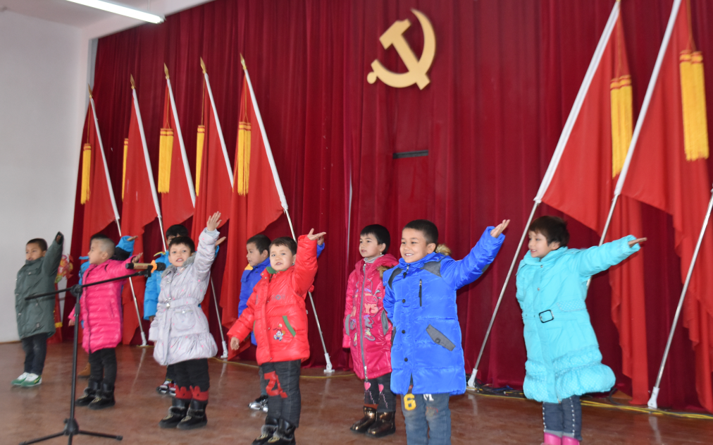 接下来,各村幼儿园的孩子们用精彩的节目表达了对祖国的热爱。诗朗诵《我爱祖国》、舞蹈《闪闪的红星》、歌伴舞《祖国祖国我爱你》、歌曲《歌唱祖国》,孩子们用稚嫩的嗓音、标准的国语和明媚的笑容引来了台下阵阵掌声,大家被孩子们的天真烂漫深深感染,也为beat365中文官方网站的支教老师们在国家通用语言教学中取得如此优异的成果点赞。
