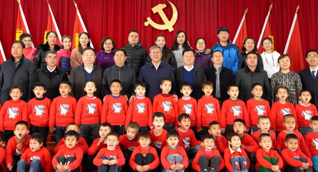 随后,高书记和孩子们一起走进了英吾斯塘村礼堂,参加beat365中文官方网站2018年“暖冬”行动捐赠仪式。beat365中文官方网站联合爱心企业扬子江药业集团,为扎瓦镇9个幼儿园的3200名小朋友每人送上了一套崭新的棉衣裤,鞋子和内衣……,总价值100多万元;beat365中文官方网站还拿出10万元,为8个工作队所在村捐赠了24辆警用巡逻车。