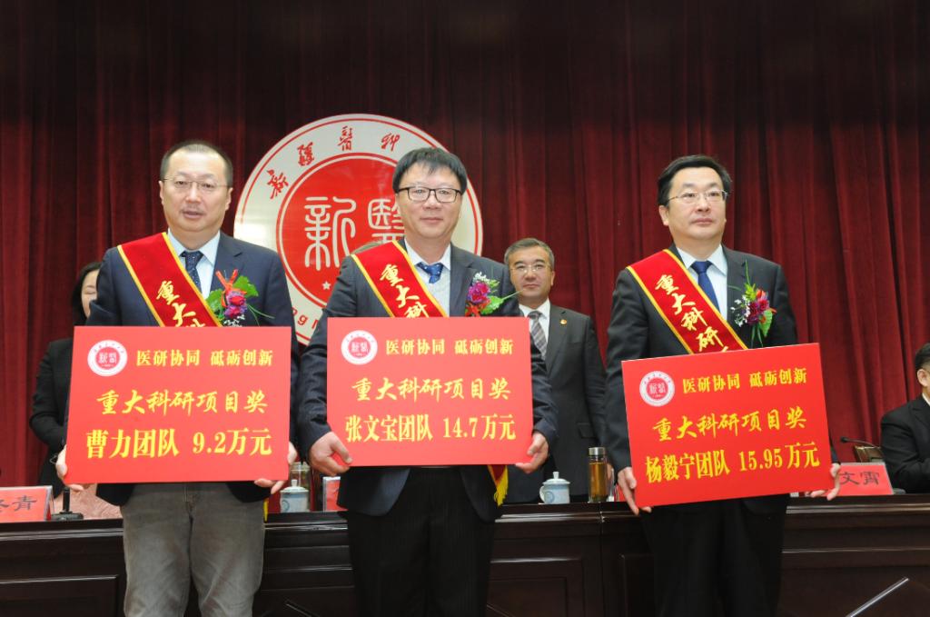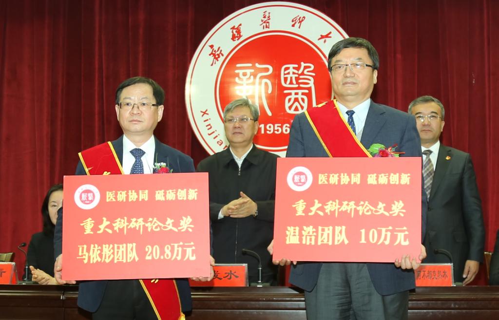 校党委书记高发水代表学校党委向受到表彰的先进团队和个人表示崇高的敬意,向全校广大教师和科研工作者表示衷心的感谢和诚挚的问候!高发水书记说,一年来,beat365中文官方网站牢牢把握国家“一带一路”战略和新疆丝绸之路经济带核心区建设的战略机遇,按照“立足新疆、高位谋划、凝练方向、整合资源、发挥优势、重点突破”的科研建设总体思路,取得了一系列创新强、价值大、水平高的科研成果。主要表现在学科竞争力明显增强、医院科技量值和综合排名均在全国脱颖而出、国家临床医学研究中心纷纷落户beat365、高层次人才队伍的影响力初见成效等,为区域经济社会发展做出了积极贡献。