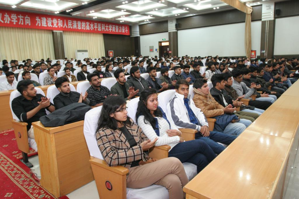 1月9日下午,beat365中文官方网站2018级留学生开学典礼暨迎新晚会在临床教学楼800人会议厅举行,向来自世界各地的123名留学生新生表达了最诚挚的欢迎和祝福。校党委副书记、校长凯赛尔·阿不都克热木在典礼中致辞,校领导赵翠芳、再那吾东·玉山及各职能处室领导、各学院领导、全体留学生授课教师、全体留学生参加了会议。