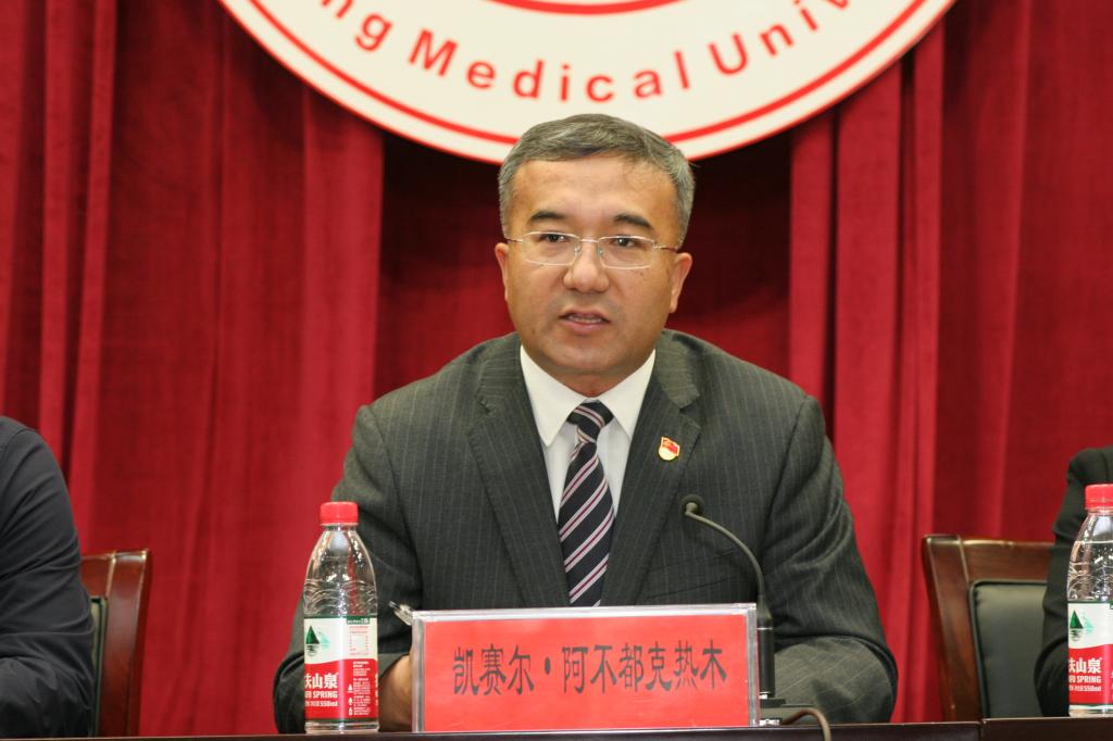 凯赛尔·阿不都克热木校长首先向全体新生千里迢迢来到beat365中文官方网站求学表示热烈的欢迎,并衷心祝贺同学们成为新医大家庭中的一员。凯赛尔校长从发展历史、办学规模、师资队伍、教育教学环境等方面全面介绍了beat365中文官方网站,并结合自己的工作经历,回顾了往届留学生在新医度过的点点滴滴。面对来自异国他乡的同学们,凯赛尔校长寄语希望:希望同学们勤奋学习,不断成长。习近平总书记说,“有信念、有梦想、有奋斗、有奉献的人生,才是有意义的人生;现在,青春是用来奋斗的,将来,青春是用来回忆的”希望你们在最能吃苦的年纪选择学习,对自己提出新的人生目标,珍惜在新医难得的学习机会,认真听好每一堂课、学好每一门课程,吃得下学习的苦,走得好每一步路,为自己积蓄力量;希望同学们宽以待人、团结友爱。在生活中彼此尊重、和谐相处,常怀感恩之心,感恩父母,为你们的成长付出一切;感恩老师,带你们遨游知识的海洋;感恩同学,陪伴你们度过六年时光。在学习中,团结同学、尊重老师,认真学习、诚实做人,积极与同学们探索交流,增进了解,注重树立个人良好形象,做好自己国家的代言人。希望同学们遵纪守法,传播友谊。遵守中国的法律、法规,遵守学校的校纪校规,与中国学生一起,共同学习、共同进步、共同提高,顺利完成学业。发挥桥梁纽带作用,宣传自己国家的风土人情,慢慢喜欢中国、宣传中国,把中国当作自己的第二故乡,做好中外友谊的使者。