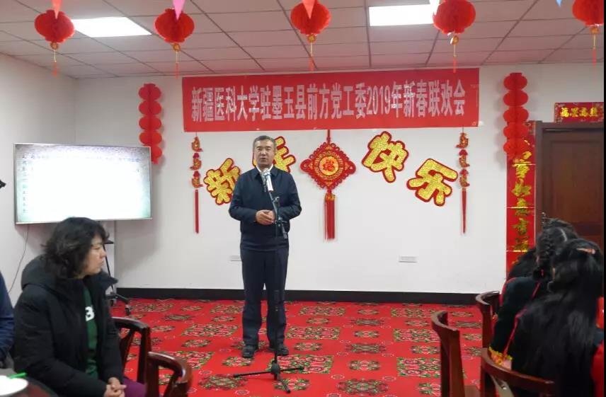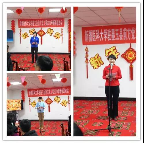 beat365中文官方网站党委副书记、校长凯赛尔·阿不都克热木、驻墨玉县工作队前方党工委书记、“访惠聚”驻村工作队总领队曹忠明和各附属医院领导,扎瓦镇领导,访惠聚工作队、扶贫专干、驻墨玉县医院、结亲干部、亲戚代表100多人欢聚一堂,共同迎接新春佳节的到来。