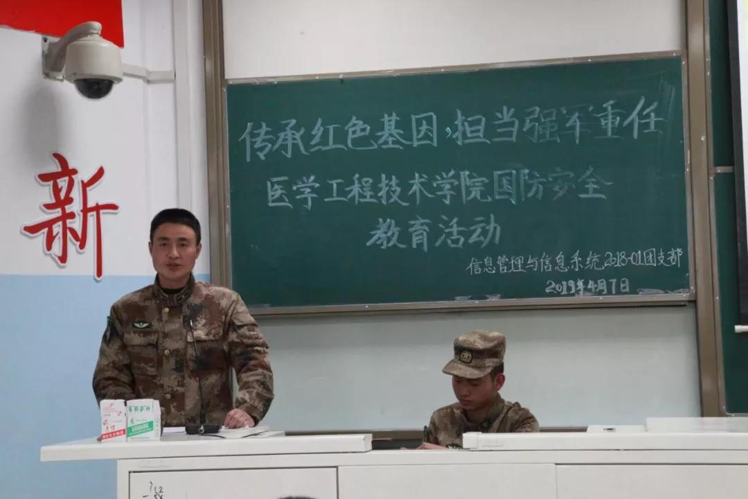 语言文化学院、中医学院开展以“国家安全,我的责任”为主题的演讲比赛;医学工程技术学院将国防教育与国家安全教育相结合,邀请某红军师共同开展了“传承我军革命优良传统 激发爱党爱国拥军情怀”军民共建活动,进一步厚植了学生国防观念和爱国情怀。