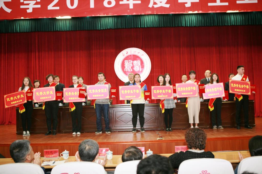 大会表彰了维吾尔医学院等5个“学生工作先进集体”、护理学院等6个“五四红旗”团委、临床医学2015-6班等55个“先进班集体”、4号公寓406宿舍等100间文明宿舍等先进集体。同时,还表彰了陈芳等17名“优秀学生工作者”、艾合买提•图尔贡等8名“优秀团务工作者”,以及“优秀班主任”、“优秀大学生”、“优秀学生干部”等先进个人。