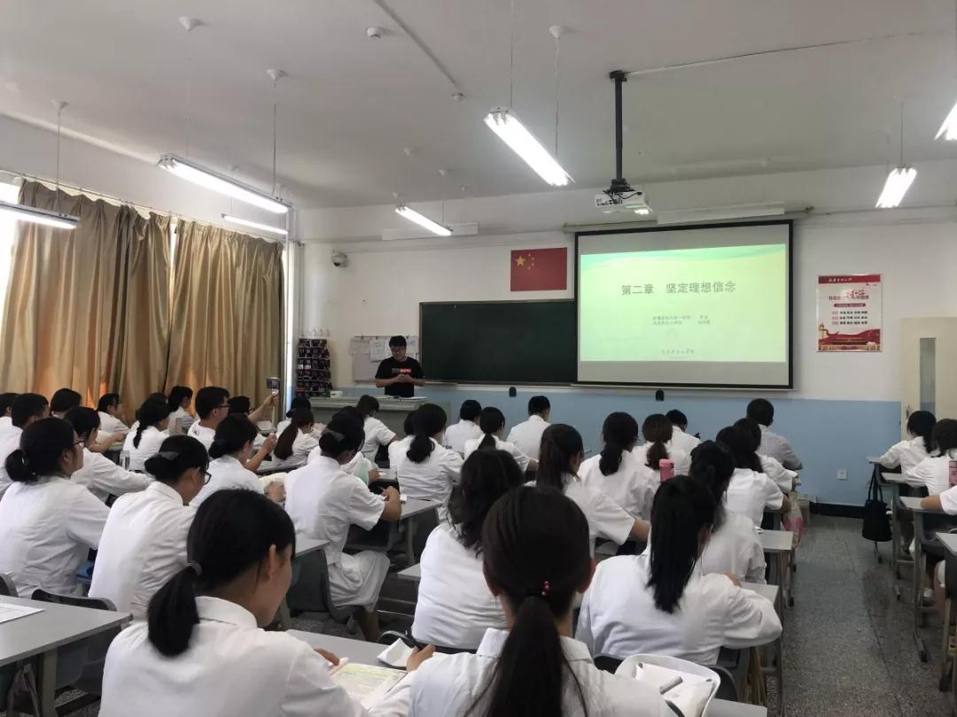 什么是理想信念?理想信念的特征是什么?任课教师马斌锋循循善诱,通过熟悉的人物和事例让学生更易于理解和思考。在讲到面对新时代医学生应当树立怎样的理想信这一重要之问时,马斌锋老师请出了第一附属医院呼吸科贾斌医生。贾医生讲述自己如何在平凡的生活和岗位中坚定理想信念,在实现自我价值的同时,为社会、为他人创造更多价值。向同学们讲述自己如何通过努力学习,从一名医学专科生到考上博士研究生,并成为beat365中文官方网站第一附属医院一名住院医师的成长经历。贾医生说到:“年轻人一定要勇于吃苦、乐于吃苦,要有理想,并为之不懈奋斗,只要努力,最终都是有收获的。”在住院医师的几年时间里,贾斌医生兢兢业业,恪尽职守,加班加点也毫无怨言,他的经历使同学们深受感动。课堂上,学生们听得入迷,教师讲得起劲,打破了以往传统的教学方式,且通过真实的经历与感受,让同学们看到了理想信念在我们每一个人成长道路上的重大意义。