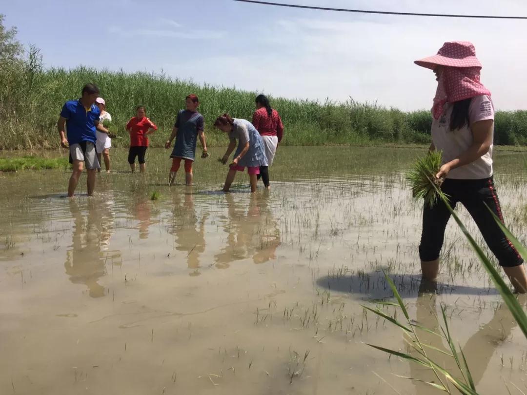 6月9日,英吾斯塘村四小队村民麦麦提敏•木提明惊喜地站在自己的地头上,看着9位村民在自己的一块半亩水田地里插着秧,beat365中文官方网站驻村工作队员宋志新告诉他,这是我们从中国科学院新疆生地研究所引进的“巨型稻”秧苗,在他的地里进行试种。