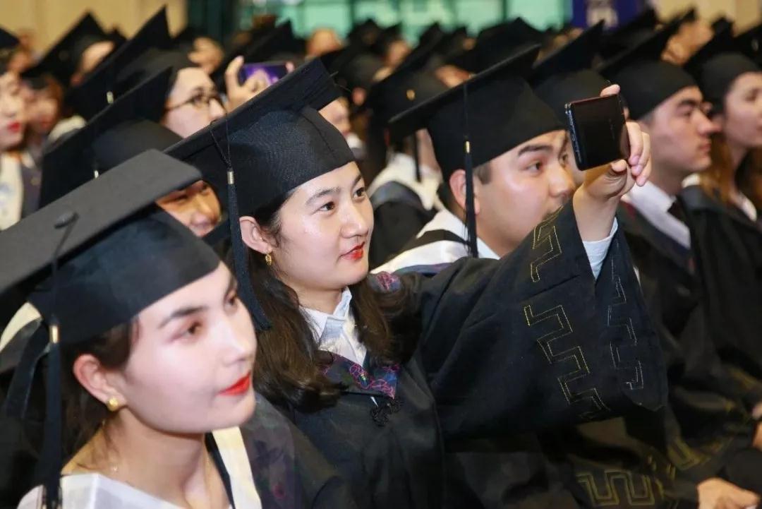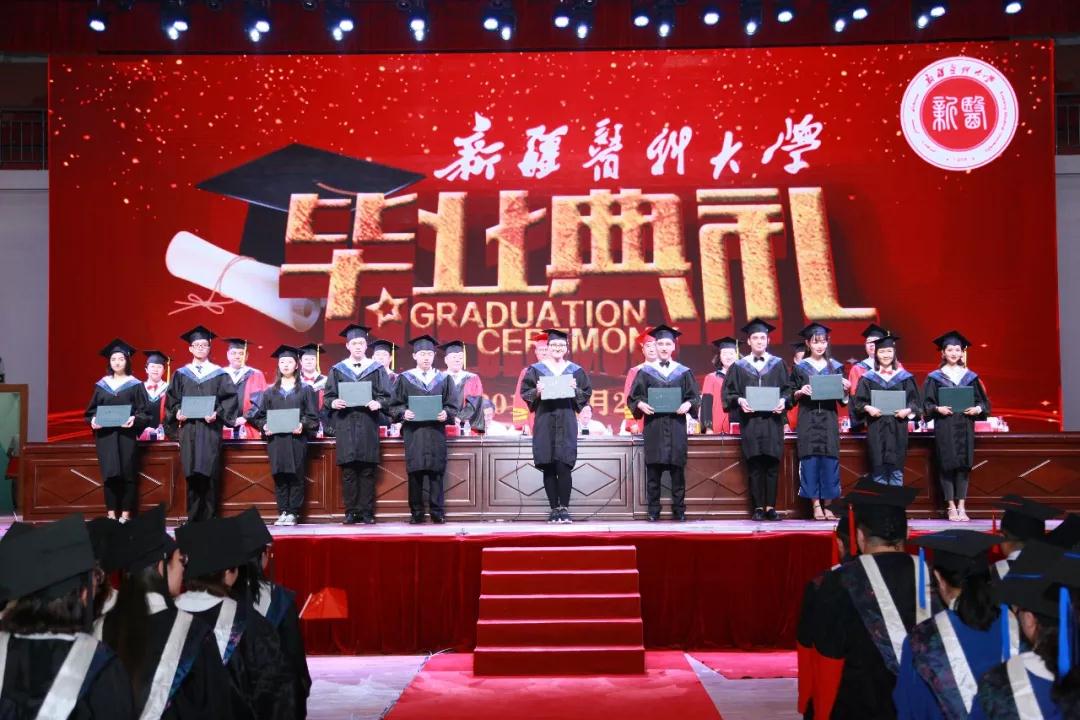 校党委常委、副校长再那吾东•玉山教授宣读《beat365中文官方网站关于表彰2019届优秀毕业生的决定》。学校授予吴建江、迪丽胡麻•居来提等110名博士、硕士研究生;徐浩哲、开丽比努尔•阿布来提等303名本专科生;亚瑟•艾力•巴特等3名留学生“优秀毕业生”荣誉称号。校领导为毕业生颁奖。