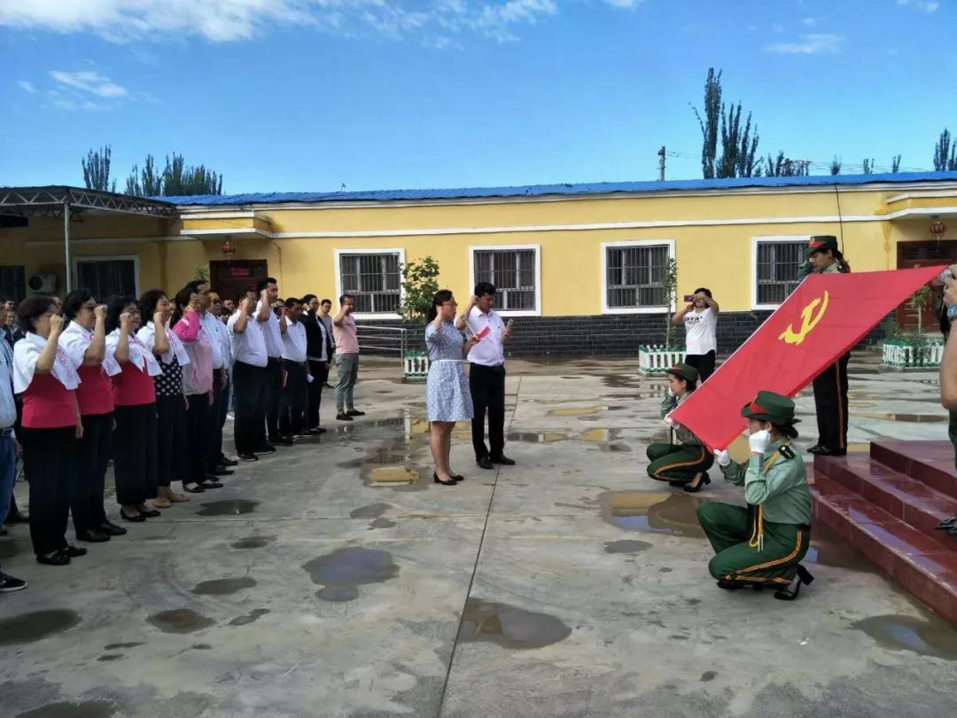 雨后的墨玉县扎瓦镇巴夏克其村村委会内,空气格外清新,天空无比湛蓝,三位专家一大早驱车一个多小时赶到了活动现场,看到村民们们整整齐齐的在村委会院子里等着专家们,她们深深的被朴实的村民所感动,也顾不上连日来的辛苦,马上投入到了工作中。恰逢七一党的生日,访惠聚驻村干部组织开展了“庆七一主题升旗仪式”在雄壮的国歌声中,三位专家和全体村民一同高唱《国歌》,在阳光的照射下,迎风飘扬的五星红旗冉冉升起在湛蓝的天空中,全体村民的爱国之情油然而生。升旗仪式结束后,专家们一行和和全体村民党员重温了入党誓词,党员们佩戴党徽,面向鲜红的党旗庄重的举起右手,洪亮的誓言响彻在村委会的上空,也让大家无比激动和自豪!