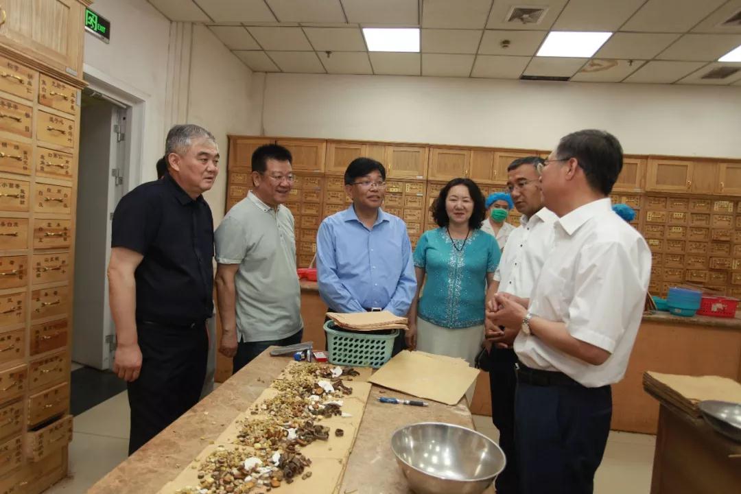 随后,在校党委副书记、校长凯赛尔·阿不都克热木,校党委常委、副校长安冬青的陪同下,上海中医药大学党委书记曹锡康一行对附属中医医院进行了参观访问,实地参观了解中医药建设和学术发展情况,与国医大师沈宝藩见面,并与附属中医医院负责人座谈交流。