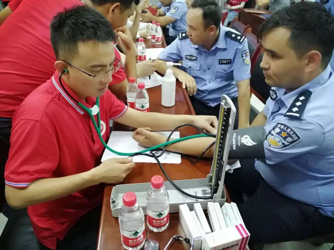 义诊现场,前来问诊的民警络绎不绝,义诊专家们耐心地问诊、看病,实践队员们也竭尽全力协助专家写药单、拿药。此次义诊惠及民警40余名,免费发放药品近千元。