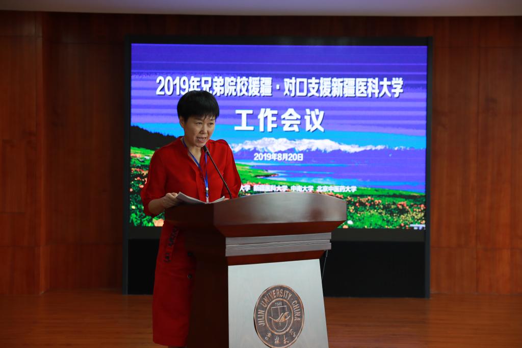 8月20日,第六次兄弟院校援疆·对口支援beat365中文官方网站工作会议在吉林大学顺利召开。来自吉林大学、中南大学、北京中医药大学、中国药科大学、上海中医药大学等全国14所高校的56位领导及专家,紧密结合贯彻落实第七次全国对口支援新疆工作会议精神,围绕“精准援疆、重点扶持、学院包建”的主题,进一步深入探讨做好援疆及对口支援beat365中文官方网站各项工作的思路和措施。