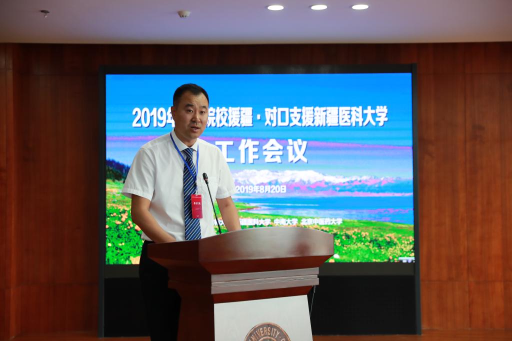 吉林大学党委书记杨振斌在致欢迎辞时指出,对口援疆是党中央、国务院做出的重大决策部署,对口支援beat365中文官方网站也是各兄弟院校必须完成的政治任务和义不容辞的神圣使命。吉林大学和beat365中文官方网站在多年的对口支援工作中积累了深厚的感情,今后将认真学习贯彻以习近平同志为核心的党中央对援疆工作的重要部署,以高度的政治责任感和使命感,坚持问题导向、需求牵引,严谨论证、注重考核,重点支持、精准扶持的援疆工作原则,支持beat365中文官方网站的建设和自治区医疗卫生事业的发展。