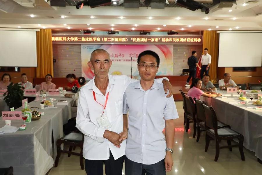 结亲干部刘新福和伊敏•库尔班大叔结为了亲戚之后,逐渐从陌生到熟悉,再到亲如一家。刘新福开心地说:“每次去看望亲戚,伊敏大叔都会把我当亲儿子看待,总会把家里最好的东西分享给我,让我在墨玉也感受到家的温暖。”2017年8月,伊敏•库尔班大叔的女儿由于脊髓压迫,下半身几乎瘫痪,在第二附属医院领导的关心帮助下顺利住院。经过两个月的精心治疗和护理,伊敏大叔的女儿病情恢复良好,现在已经可以下地行走。两人再次见面时,伊敏大叔紧紧地握着刘新福的手,感激地说着“谢谢,谢谢我的好亲戚,谢谢新医大二附院的医生护士们。”“民族团结一家亲”活动让两人的友谊更加深厚。