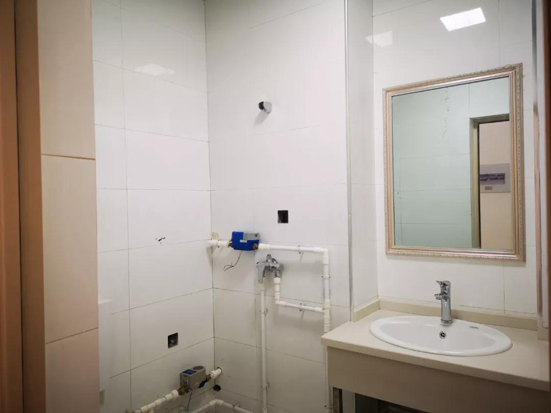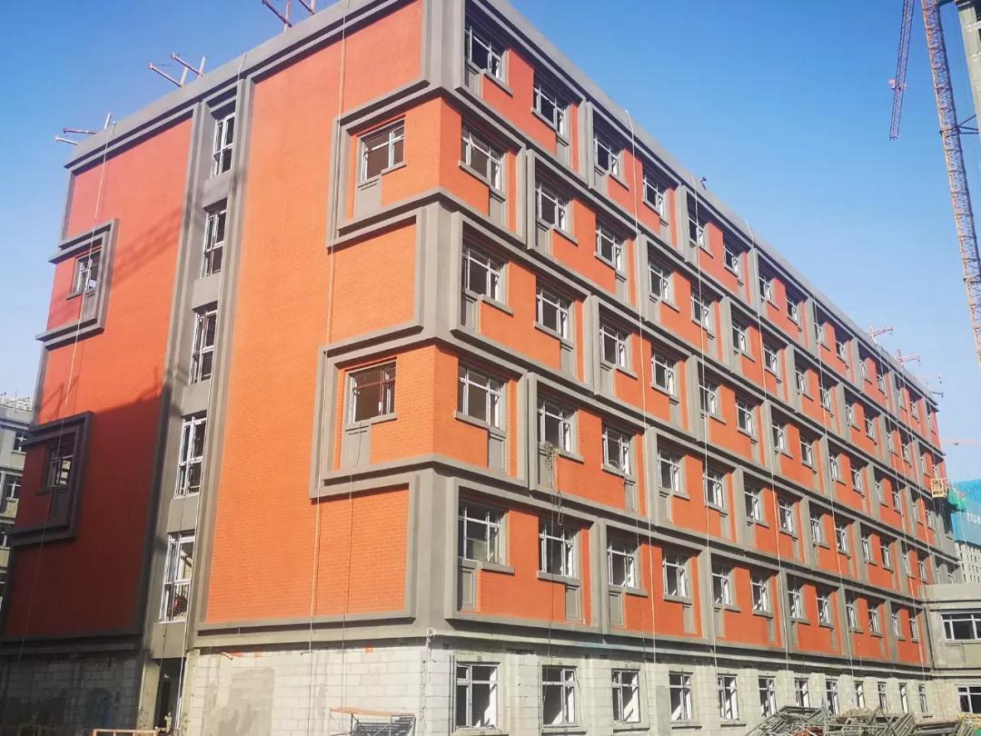让新医学子们心心念念的还有新校区的学生公寓,分别由四家建筑公司承建的17栋学生公寓楼正在加紧建设,内装和外装在同步快速推进。按照工程进度,9月25号,一至四号学生公寓楼将完成全部内外装的施工。在阳光映衬下,已经完成外墙彩喷的二号学生公寓楼展现出靓丽的色彩。走进宿舍,香槟色的地砖、洁白的墙面都让人心情舒畅,天蓝色的上床下桌家具和结实的行李架拓展了居住的空间,每间宿舍配备的独立卫生间,会让学生们更感舒适和幸福。