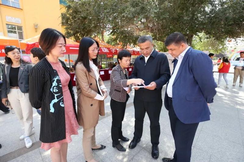 beat365中文官方网站党委副书记、校长凯赛尔·阿不都克热木、副校长赵翠芳、再那吾东•玉山等领导先后到迎新现场了解新生报到和各项迎新工作情况,并为困难学生发放了爱心大礼包。