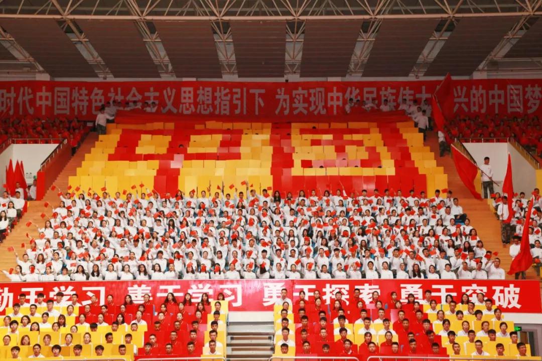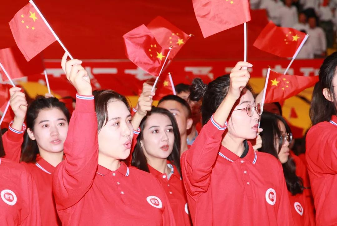 典礼的最后,全场师生在《歌唱祖国》的激昂歌声中沸腾,师生们挥舞着手中的国旗,用高昂歌声宣告青春活力,人手一面小国旗汇成了一片红色的海洋,师生用这种方式向祖国告白,为新中国成立70周年献礼!
