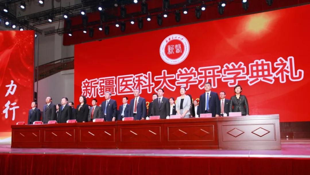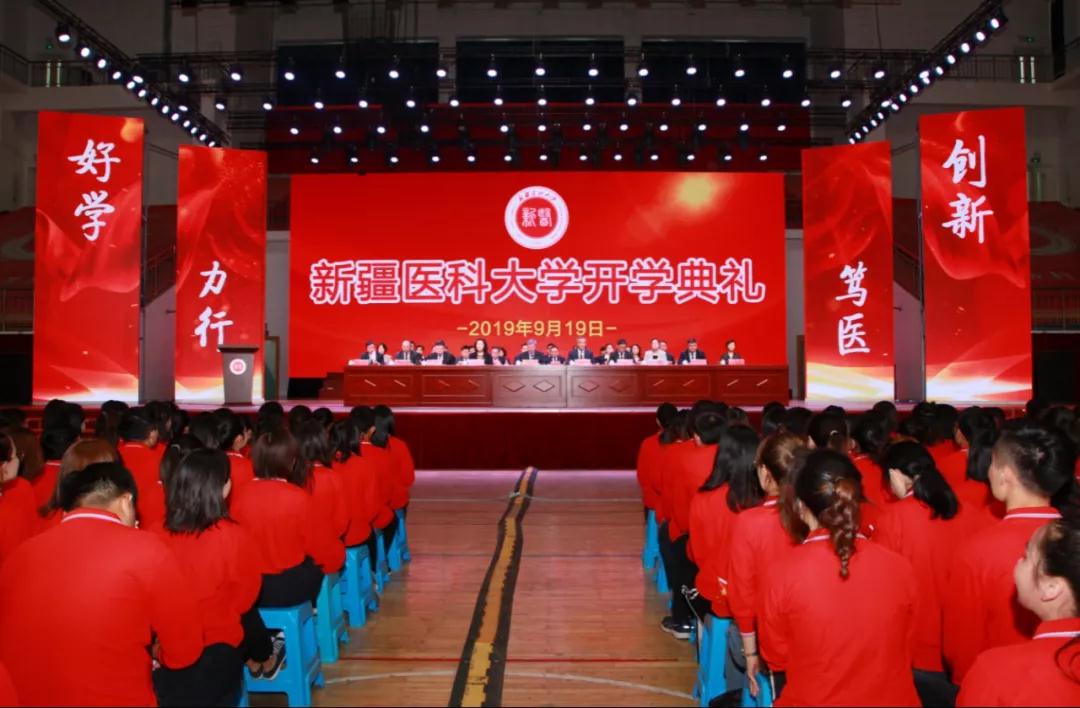 各职能处室负责人、各学院书记、分管学生工作领导、教师代表、政治辅导员、班主任、2019级新生共同参加了开学典礼。大会以视频会议的形式召开,同时还在临床教学楼800人会议厅,图书馆六楼报告厅,苏园1号楼二楼会议室,北校区教学楼六楼学术厅,各临床医学院(附属医院)、克拉玛依学院、高职学院(巴州校区)视频会议室设立了分会场,全校共8000多人参加了规模盛大的开学典礼。