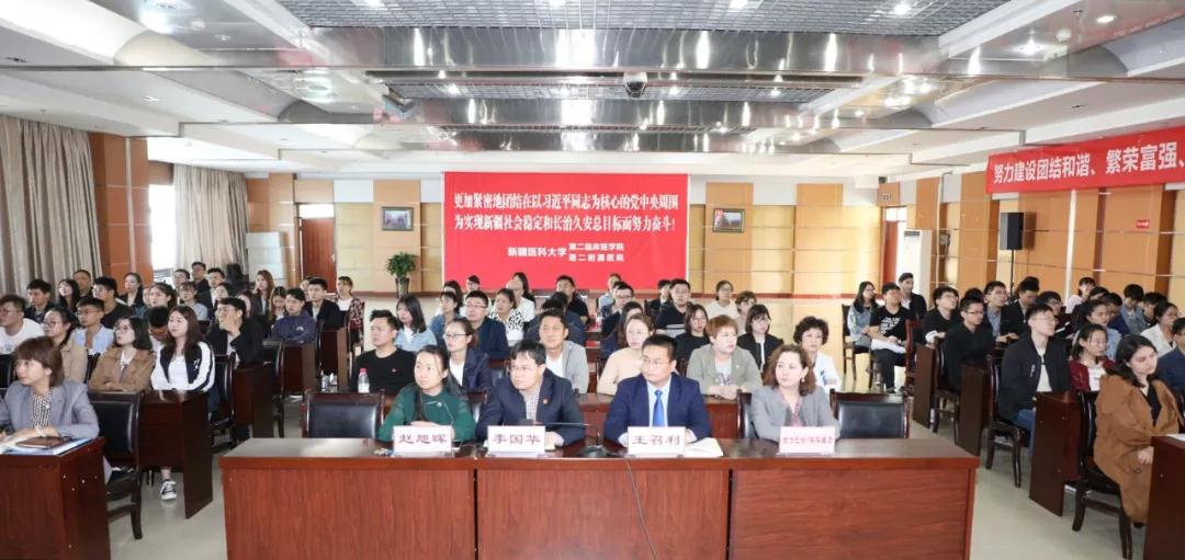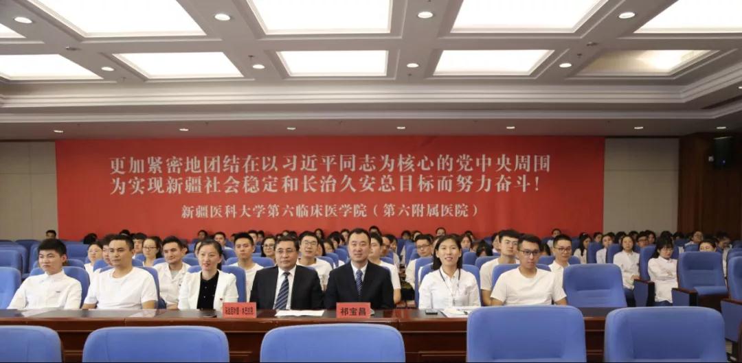 中医学院中医学(免费医学生)专业2017-2班张欣婷作为老生代表希望各位学弟学妹们融入新医、爱上新医,用青春担当中国梦,苦学实干做新医人。2019级新生代表口腔医学院研究生尼加提·努尔穆罕默德、第一临床医学院张晨旭、克拉玛依校区新生代表候一凡、巴州校区高职学院新生代表拜克阿依姆·苏音巴依同学分别在发言中表达了在新医这充满生机盎然而又欣欣向荣热土开始新征程的激动和喜悦,对学校满满的关心和关爱及老师热情周到的喜欢和热爱,并定下大学之约,用青春和汗水在传承新医红色基因的实践中努力奋斗,成为祖国医学事业的合格接班人。