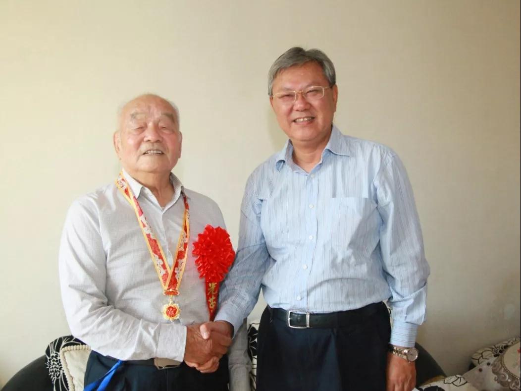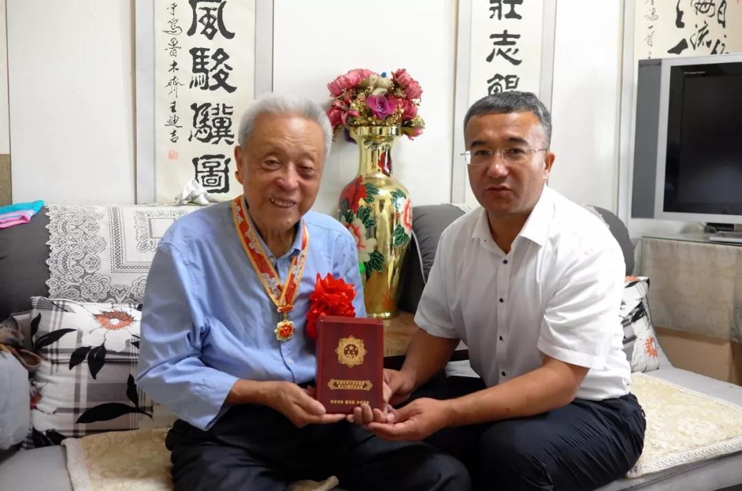 校党委书记高发水来到84岁的房桂华和88岁的支华庆老人的家,亲手为两位老人佩戴了纪念章,并向老人们表达党和国家对老一辈革命家、建设者的崇高敬意和亲切关怀。