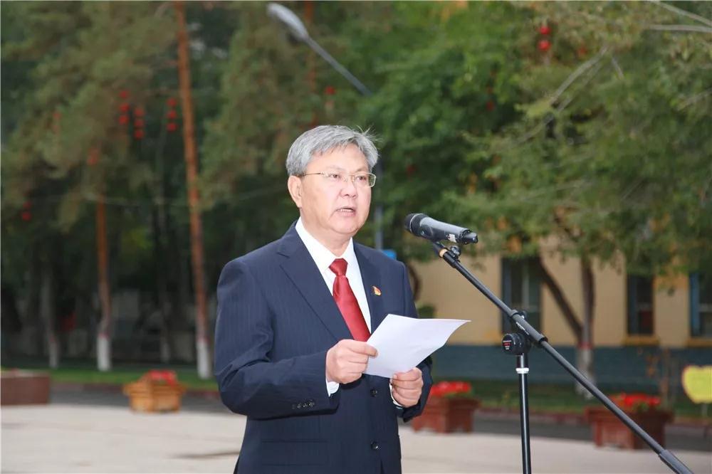 校党委书记高发水发表国旗下的讲话。他说,新中国的70年,是历经艰辛、创造辉煌70年,是浴血奋战,从胜利走向胜利的70年,是艰苦奋斗,创造一个又一个人间奇迹的70年,是中华儿女怀着对祖国最深沉的爱,团结一心、无私奉献、敢于牺牲、英雄辈出的70年。我们的祖国从没有像今天这样欣欣向荣、蒸蒸日上。我们的民族从没有像今天这样扬眉吐气、自信满怀。我们的人民从没有像今天这样幸福安康、意气风发。