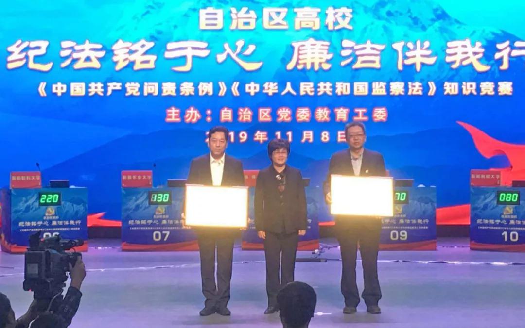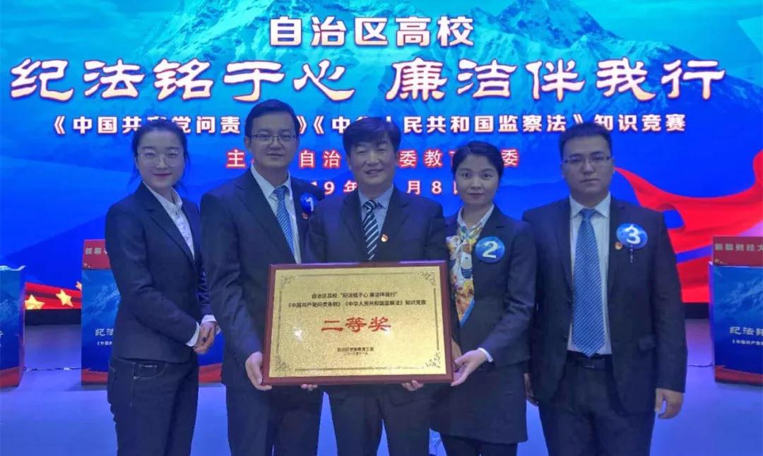 在11月8日举行的自治区高校“纪法铭于心 廉洁伴我行”知识竞赛上,15所高校代表队同台竞技,共展风采。beat365中文官方网站代表队经过激烈的角逐荣获二等奖,beat36535名纪检监察干部和职工代表在现场观摩了竞赛。