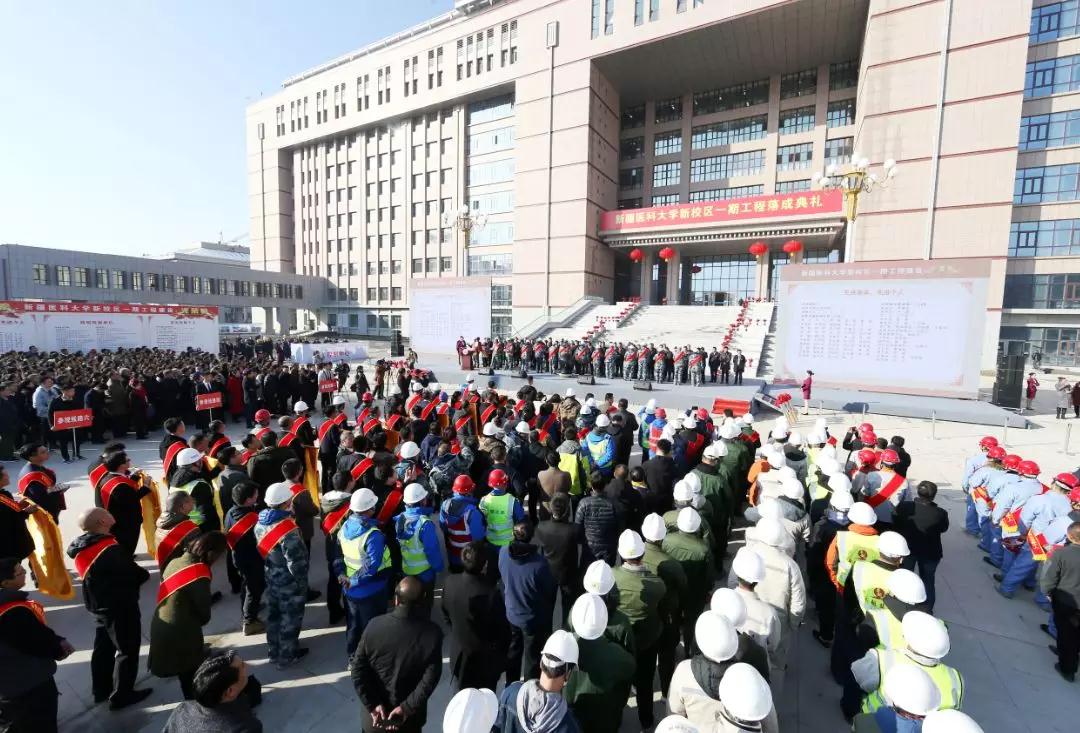 师生代表基础医学院副院长林晨和公共卫生学院迪力木热提·努尔麦麦提向新校区建设者们团结协作、攻坚克难的勤劳付出表达了敬意,被新校区建设者艰苦奋斗、一往无前的精神深深震撼。他们表示,要以新校区建设者的奉献精神为强大动力,众志成城、团结一心,在今后的工作、学习中不忘初心、牢记使命,为建设新时代的辉煌新医贡献力量。