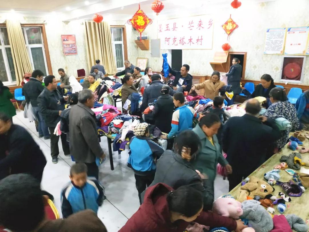 当天,结亲干部们早早来到阿克塔木村村委会,和驻阿克塔木村工作队员一起拆包裹,整理衣物,大家仔细地将捐赠的衣物进行分类,并整齐的摆放在桌子上。衣物大部分是棉衣,羽绒服,棉裤,棉帽,玩具,书籍,还有全新的帽子手套等共计千余件,十二张长桌摆得满满当当。