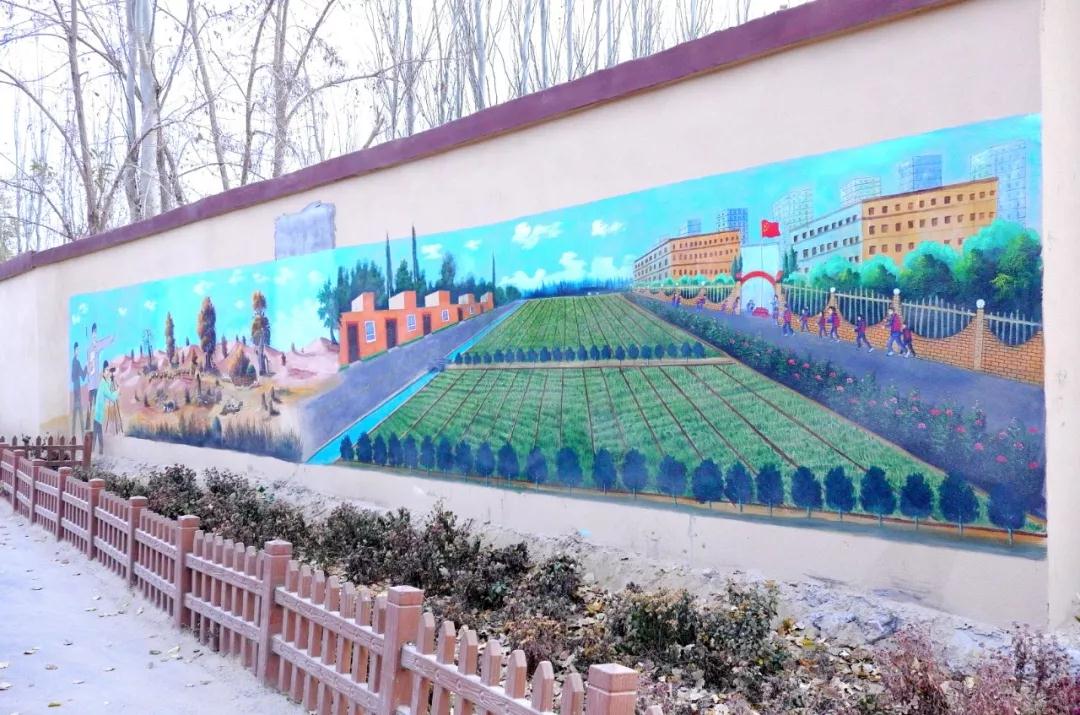 在离英吾斯塘村村委会不远的墙面上,一幅颜色鲜艳的彩绘格外醒目,画上写着一句“幸福是奋斗出来的”正是村民们生活的真实写照。