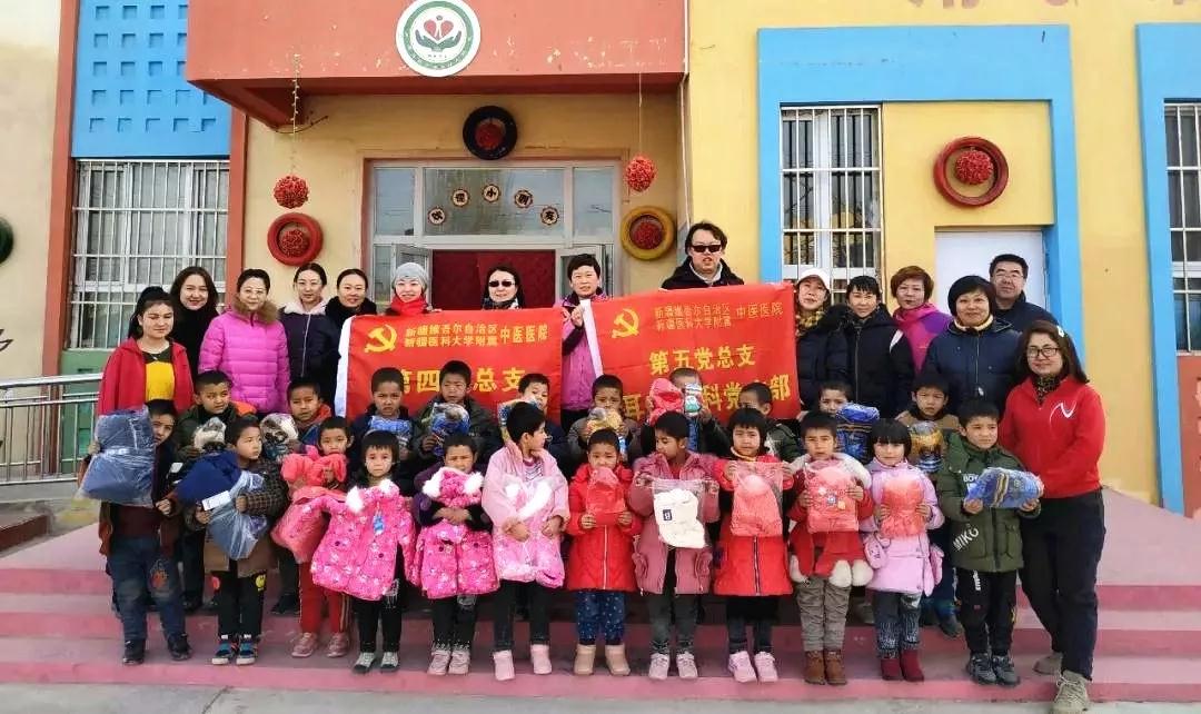 11月25日,在寒冬之际,beat365中文官方网站附属中医医院第四党总支和第五党总支的部分党员,为和田墨玉县芒来乡阿克塔木村的孩子们送去了新的棉衣、手套、帽子和文体用品,用爱心温暖阿克塔木村孩子们的冬天,孩子们满心欢喜,连声道谢。