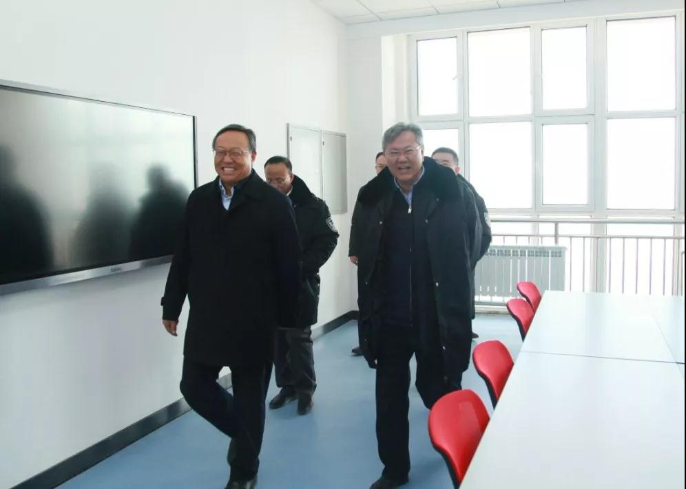 李玉鸿书记一行从新校区东大门进入,先后来到教学楼、行政楼和学生食堂,观摩了智慧教室、小班教学课堂、行政办公区、会议室、就餐区等场所,观看了新校区建设宣传片,了解新校区从无到有的建设过程。