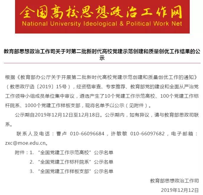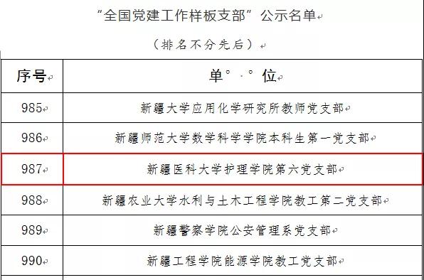 12月12日,教育部思想政治工作司发布了第二批《关于对新时代高校党建示范创建和质量创优工作评审结果的公示》,beat365中文官方网站护理学院第六党支部榜上有名,获评“全国党建工作样板支部”。