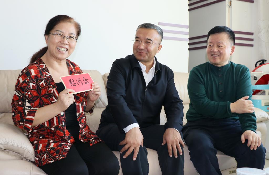 走访慰问活动中,校领导还分别看望慰问了刘红霞、张同法、孟南华、乌莉娅·沙衣提、关鹏、艾尔肯•马木提、陈晶、苏良保、由永宽、哈丽曼·阿不都克力木、阿尤甫江·阿布力孜、艾耐托拉.嘎依提、帕尔哈提·阿不都热依木、李素娥、依巴代提、高晓黎、阿斯哈尔江.买买提依明、王世平、肉孜·阿吉、赵淑秀、古扎丽努尔•阿不力孜、迪力夏提·艾尼、卢洪平、高烨、胡赛音·托呼提、刘继文、阿依努尔•阿不都热衣木、周铭心、米娜瓦尔·卡斯木、吾拉木·马木提、董建江、马克等。并通过各种方式,向143名慰问对象送出新春祝福和慰问金。老党员、困难党员群众等都纷纷表示感谢学校党委和校领导的亲切关怀和照顾,对学校取得的成绩,感到自豪和骄傲,会一如既往的支持学校党委工作,尽自己所能发光发热,为学校发展建言献策、贡献力量。