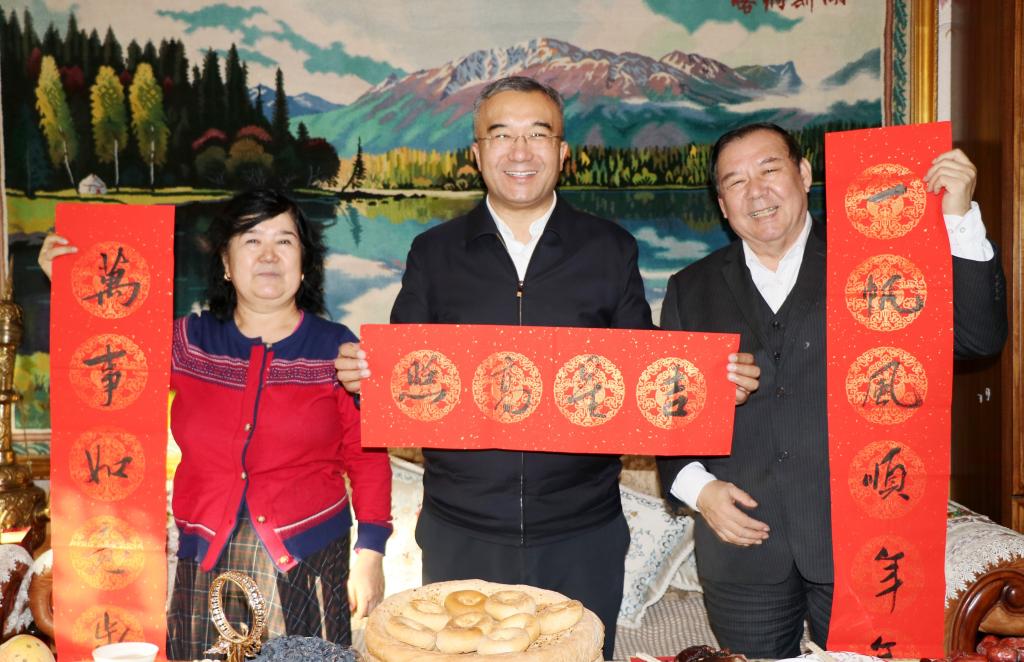 在曹忠明副书记家中,凯赛尔·阿不都克热木亲切问候了曹忠明和家人,充分肯定了曹忠明副书记在访惠聚期间的工作,并赞扬他“舍小家为大家”,不辱使命、不负众望,积极为群众办实事、办好事,并祝愿全体驻村干部和家人们新春快乐、阖家幸福。