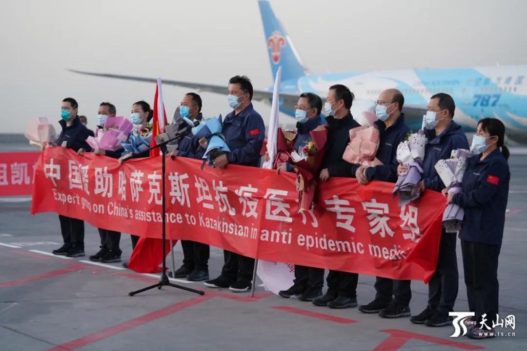 中国政府援助哈萨克斯坦抗疫医疗专家组一行10人圆满完成工作任务,于4月23日飞抵乌鲁木齐地窝堡国际机场。自治区党委常委、宣传部部长田文到机场迎接。