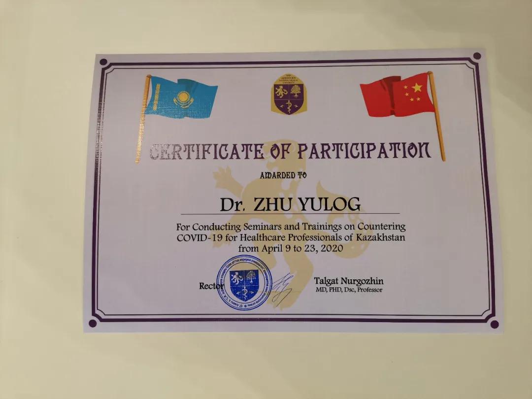 作为第一附属医院的“重量级”专家,鲁晓擘每天的行程安排得满满当当。专家组就疫情防控策略、医护人员防护、发热患者预检分诊流程、综合医院患者就诊流程、实验室检测、医疗机构合理配置、公众关切等方面与哈方专家进行了深入交流和指导,共计培训44场次、一万余人次;实地考察医疗机构9家、医科大学两所并协助指导开展疫情防控工作;前往中国驻哈萨克斯坦大使馆和驻阿拉木图总领事馆给中资机构人员、华人华侨代表、留学生等就疫情防控、诊治等作了专门授课和问题解答,带去了党和国家的温暖关怀。