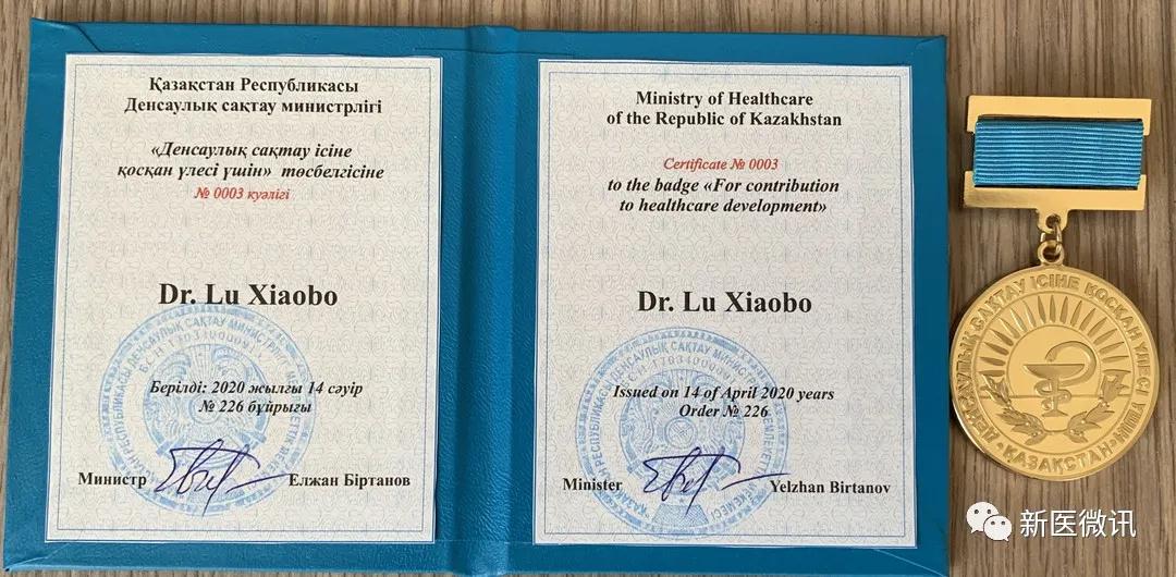 鲁晓擘荣获“哈萨克斯坦医疗卫生事业国家奖章”