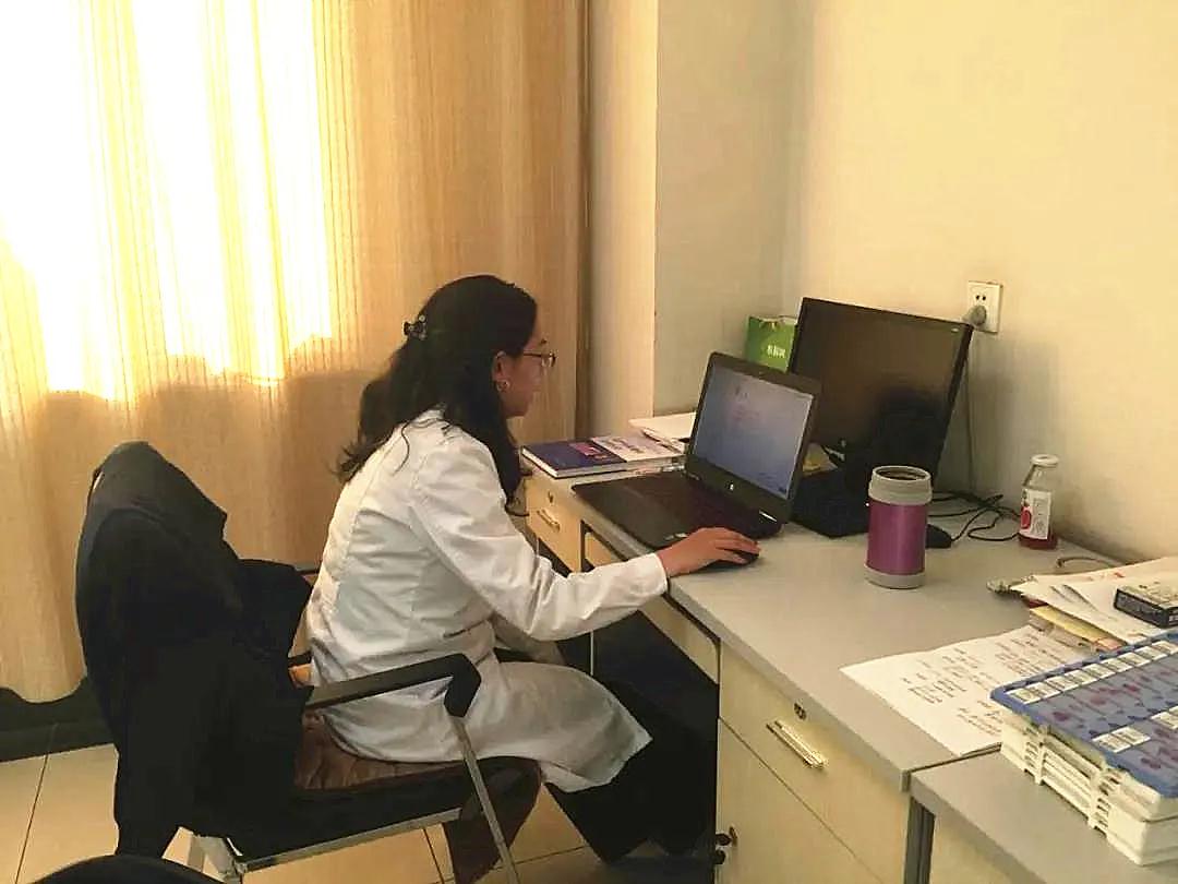 “beat365中文官方网站附属中医医院门诊大楼很现代化,丝毫不逊色于北京的大医院,而且还多了几分地域特色。这家医院是三甲医院,设备也很先进。”这是贺慧颖对援助医院的第一印象。她所在的病理科主要工作是对医院所有科室患者的各类组织标本以及各种体液样本等在显微镜下做诊断,由于人手少、任务重,科室人员每天都很忙碌。自入疆以来,贺慧颖就积极投入到病理科各项病理诊断、会诊和管理工作中,对beat365中文官方网站附属中医医院病理科的发展提出了宝贵意见。