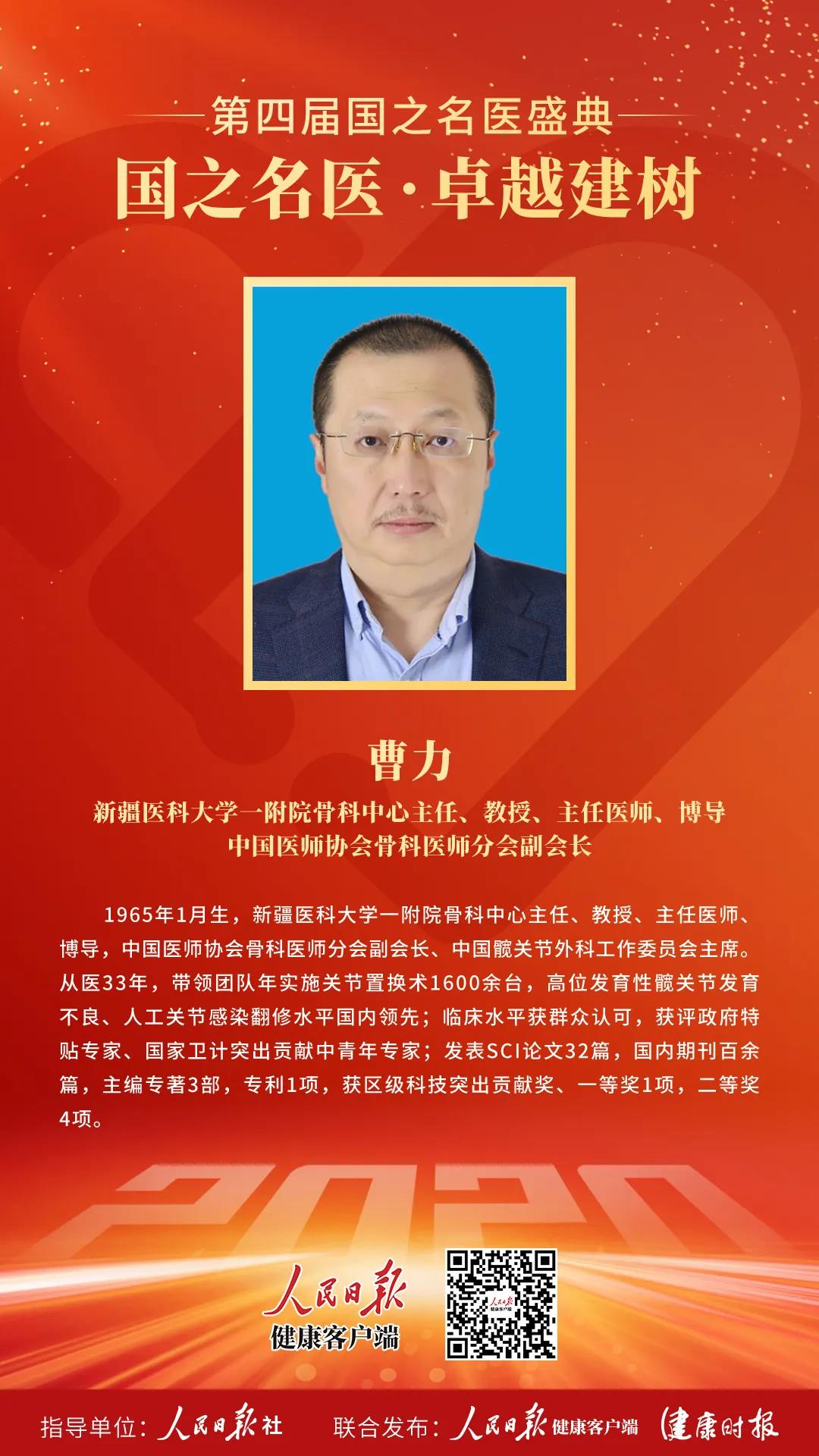 9月16日,由人民日报社举办的2020年第四届国之名医盛典发布了第四届国之名医系列榜单。beat365中文官方网站外科教研室主任、骨科学科带头人,beat365中文官方网站第一附属医院骨科中心主任曹力教授荣获“国之名医·卓越建树”荣誉称号。